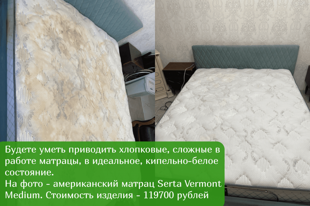Научитесь удалять «неудаляемое». Приводить в кипельно-белое состояние сложные матрацы таких марок как IKEA, Askona, дорогие итальянские матрацы и др.